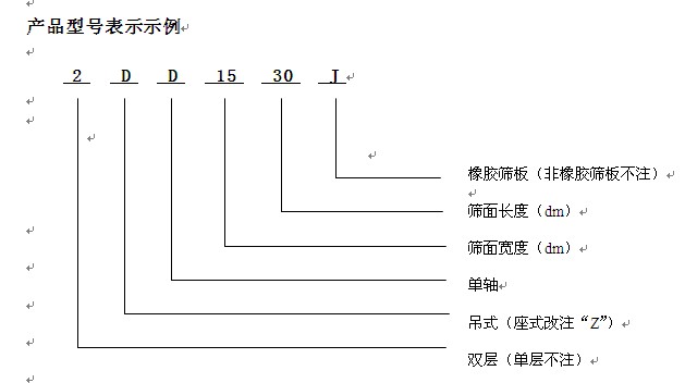 • 在選用時,如有改變篩面傾角要求,對于座式篩可另行設計,對于吊式篩可由用戶通過調整吊掛裝置的鋼絲繩長度來實現。